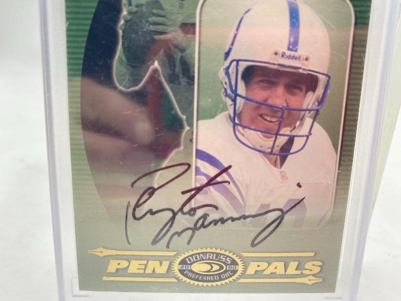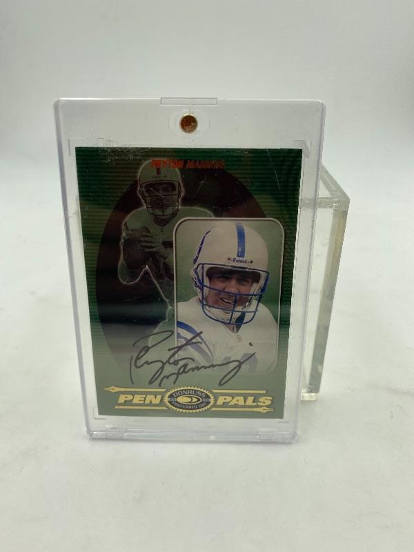 Autographed Peyton Manning Pen pals Football Card in a case.