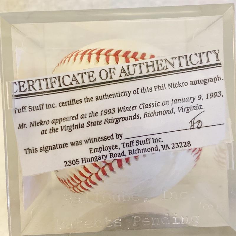 Authentic Autographed Phil Niekro Baseball. Autograph obtained at an autograph event on 1/9/1993..