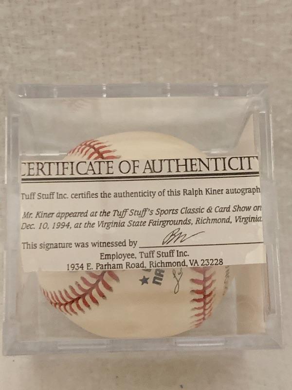 Authentic Autographed Ralph Kiner Baseball. Autograph obtained at a Tuff Stuff event on 12/10/1994.