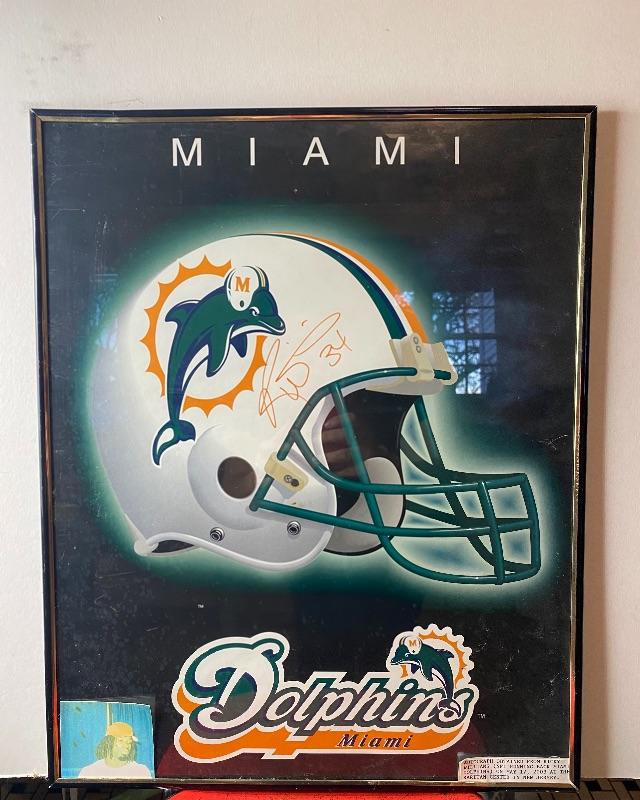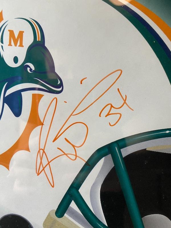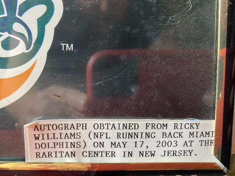 Autographed Ricky Williams Miami Dolphins Framed Poster. Autograph obtained from Ricky Williams on May 17, 2003 at the Raritan Center in New Jersey.