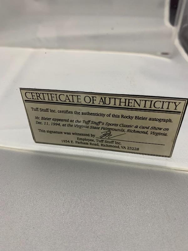 Autographed Rocky Bleier Football. Autograph obtained at a Tuff Stuff event on 12/11/1994.