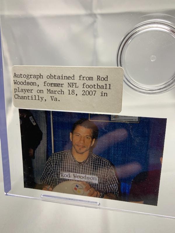 Autographed Rod Woodson Football. Autograph obtained at a CSA event on 3/18/07.