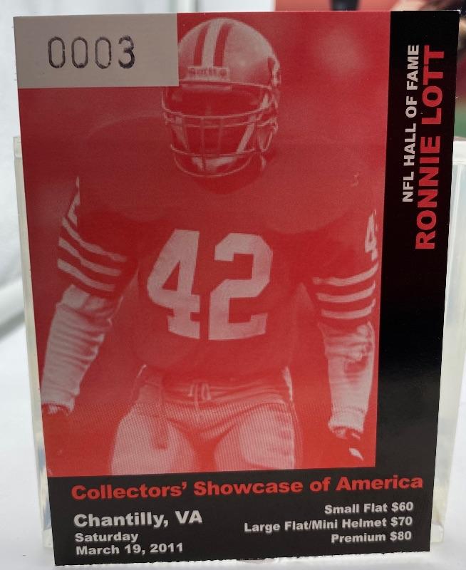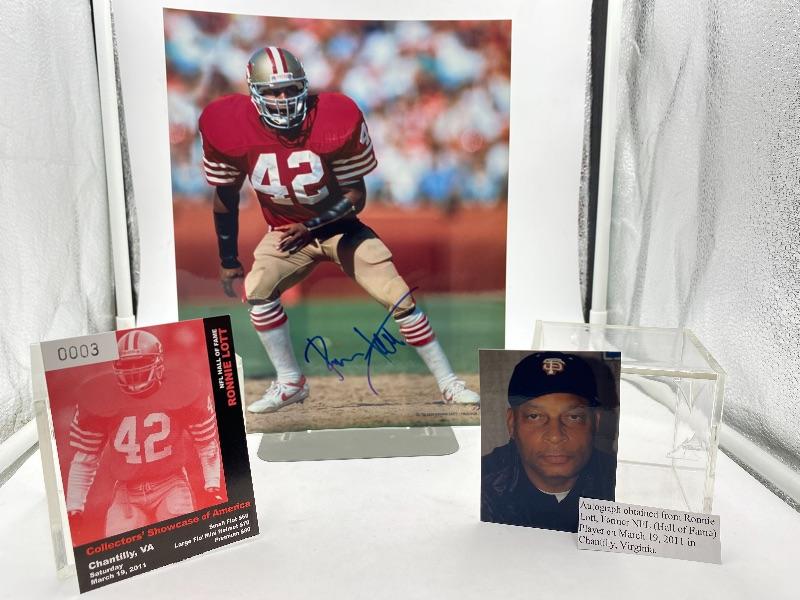 Autographed Ronnie Lott Football 8x10 Photo. Autograph obtained at a Collectors’ Showcase of America event in Chantilly, VA on Saturday March 19, 2011.