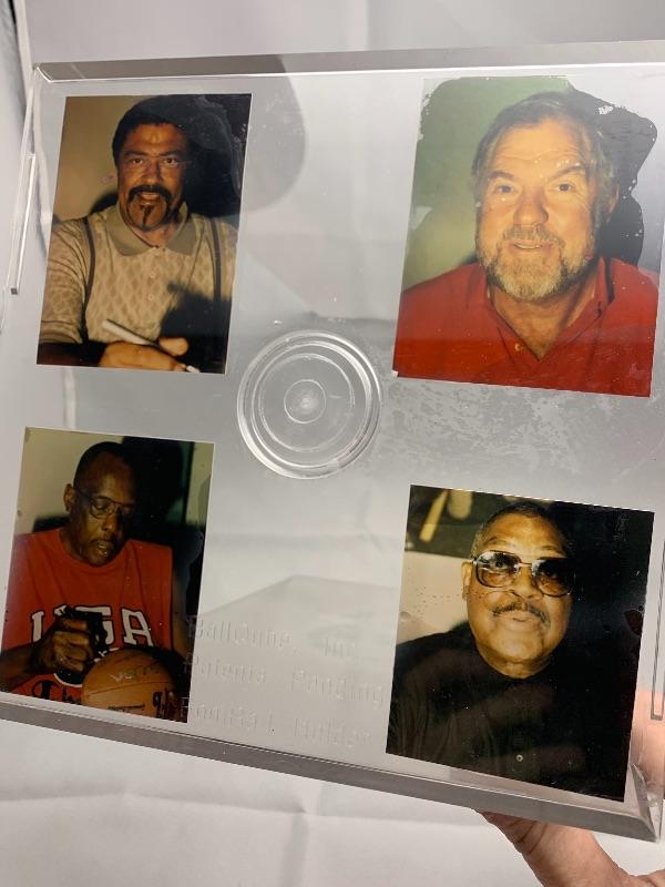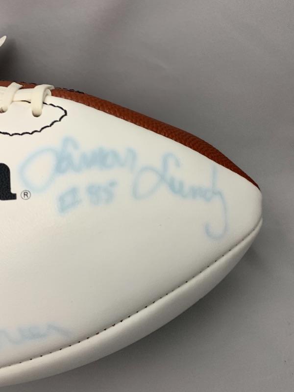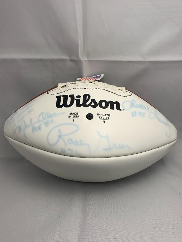 Autographed Roosevelt Grier, Deacon Jones, Lamar Lundy & Merlin Jones Football