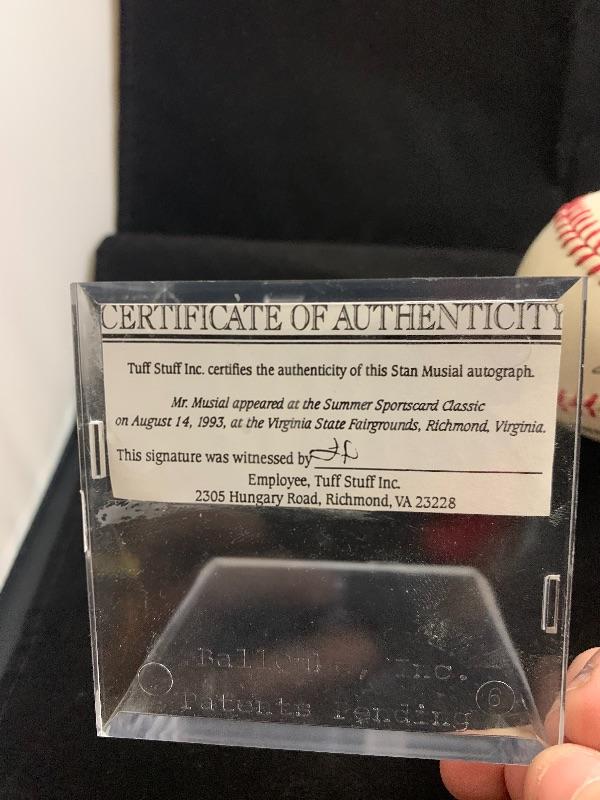 Autographed Stan Musial Baseball. Autograph obtained at a Tuff Stuff event on 8/14/1993.