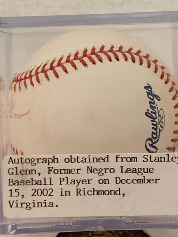Authentic Autographed Baseball Stanley Glenn. Glenn was a player in the Negro League. Autograph obtained at an autograph event in Richmond VA on 12/15/2002.