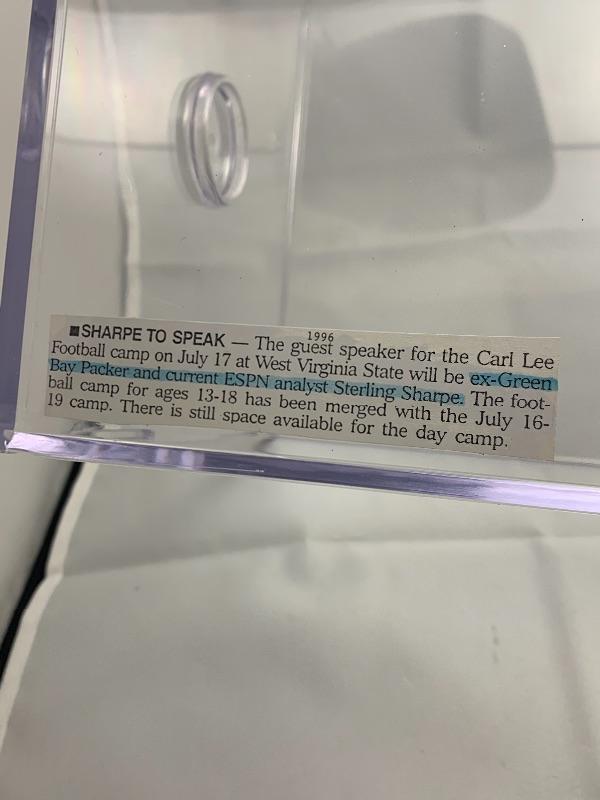 Autographed Sterling Sharpe Football. Autograph obtained at the Carl Lee Football Camp in Charleston WV.