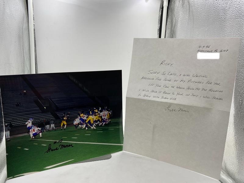 Autographed Steve Moser Football 8x10 Photo and a letter he wrote.