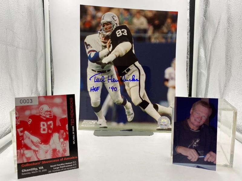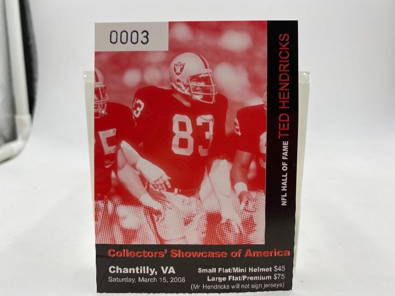 Autographed Ted Hendricks Football 8x10 Photo. Autograph obtained at a Collectors Showcase of America event in Chantilly, VA on Saturday, March 15, 2008.
