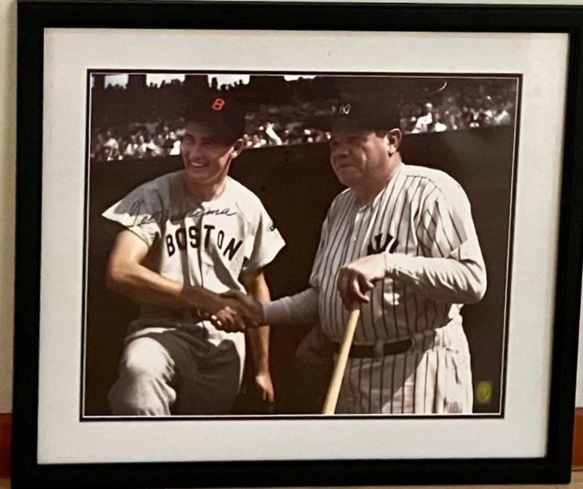 Ted Williams photograph with baseball legend Babe Ruth. Signed by Ted Williams.