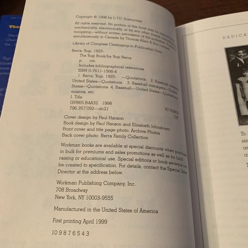 Autographed “The Yogi Book” 1st printing. With Premiere Collectibles COA.