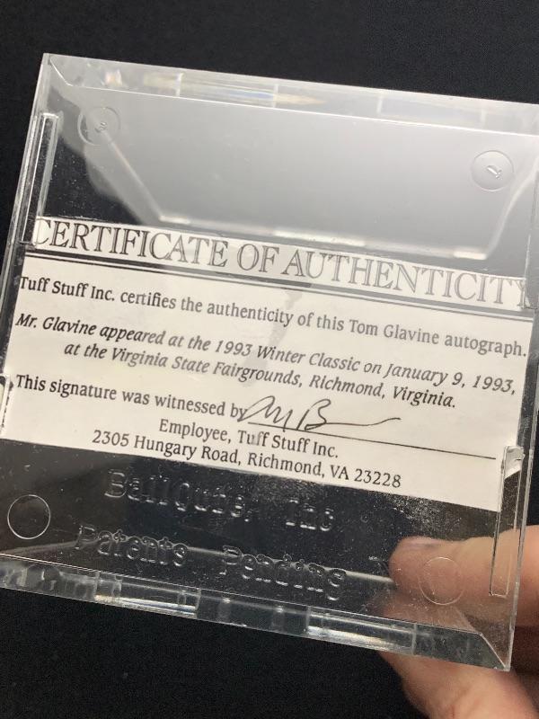 Authentic Autographed Tom Glavine Baseball. Autograph obtained at a Tuff Stuff event on 1/19/1993.