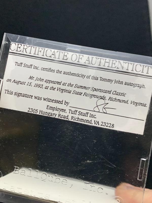 Authentic Autographed Tommy John Baseball. Autograph obtained at a Tuff Stuff event on 8/15/1993.