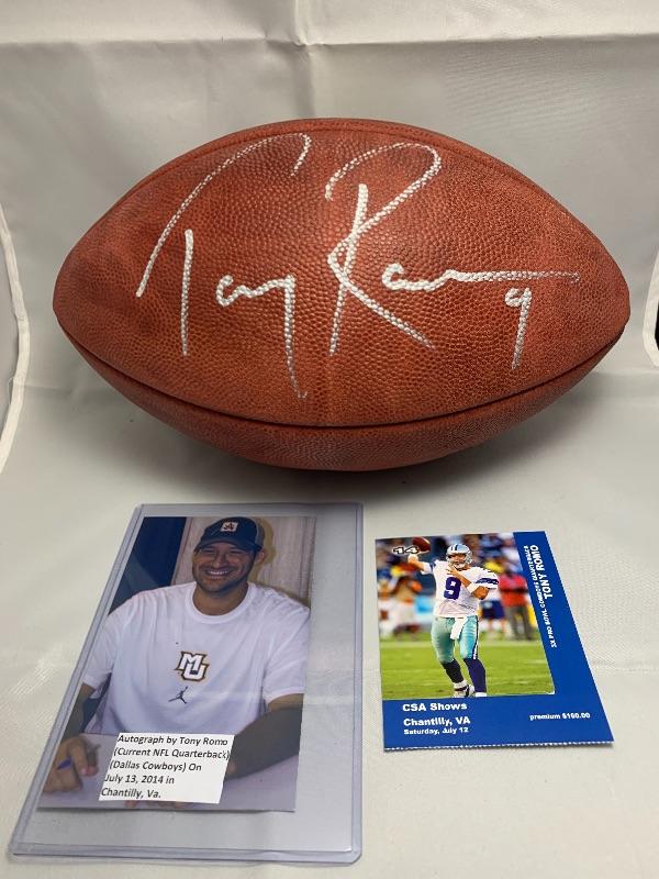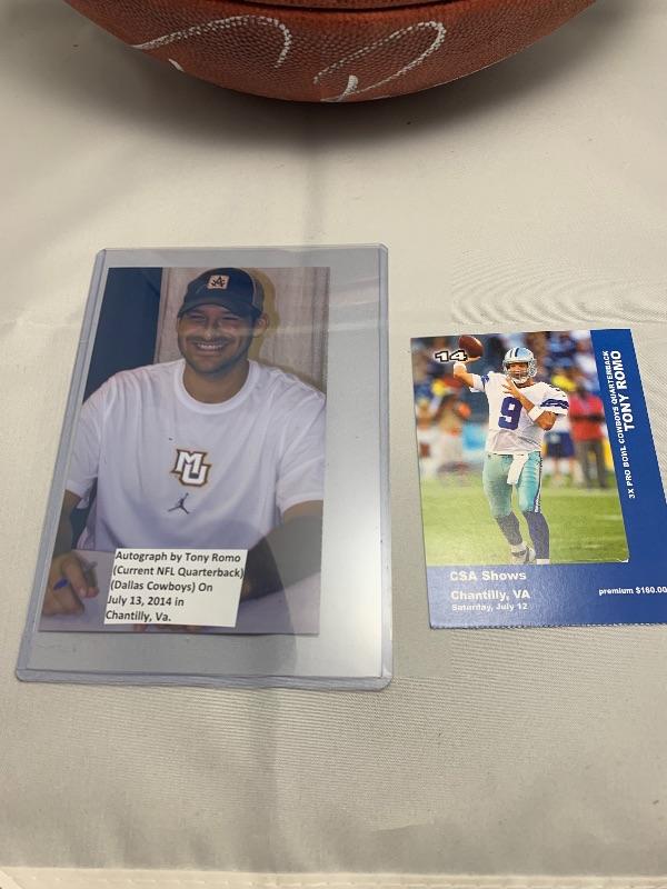 Autographed Tony Romo Football. Autograph obtained at a CSA autograph event on 7/13/14.