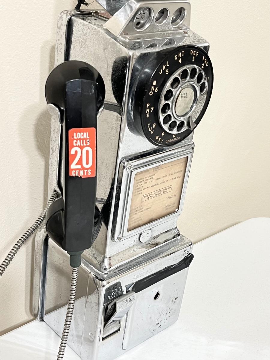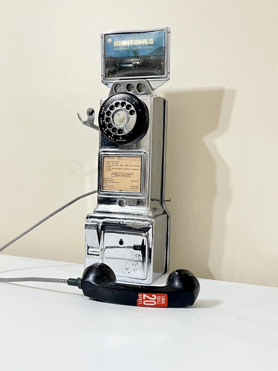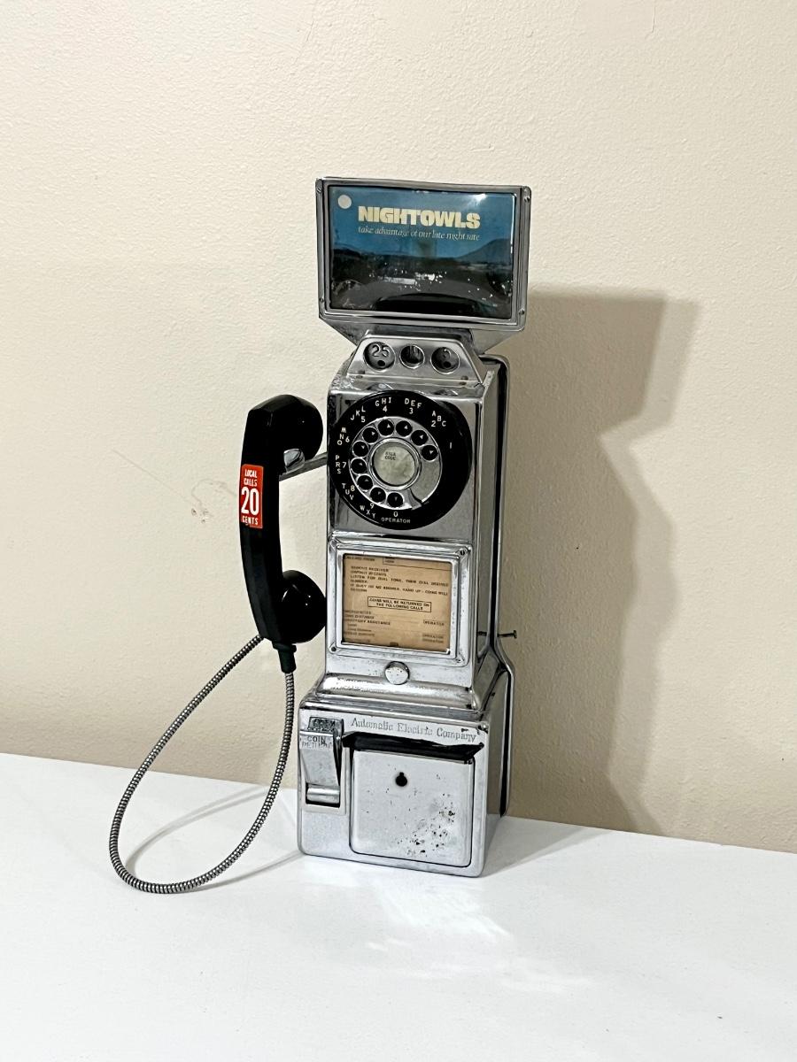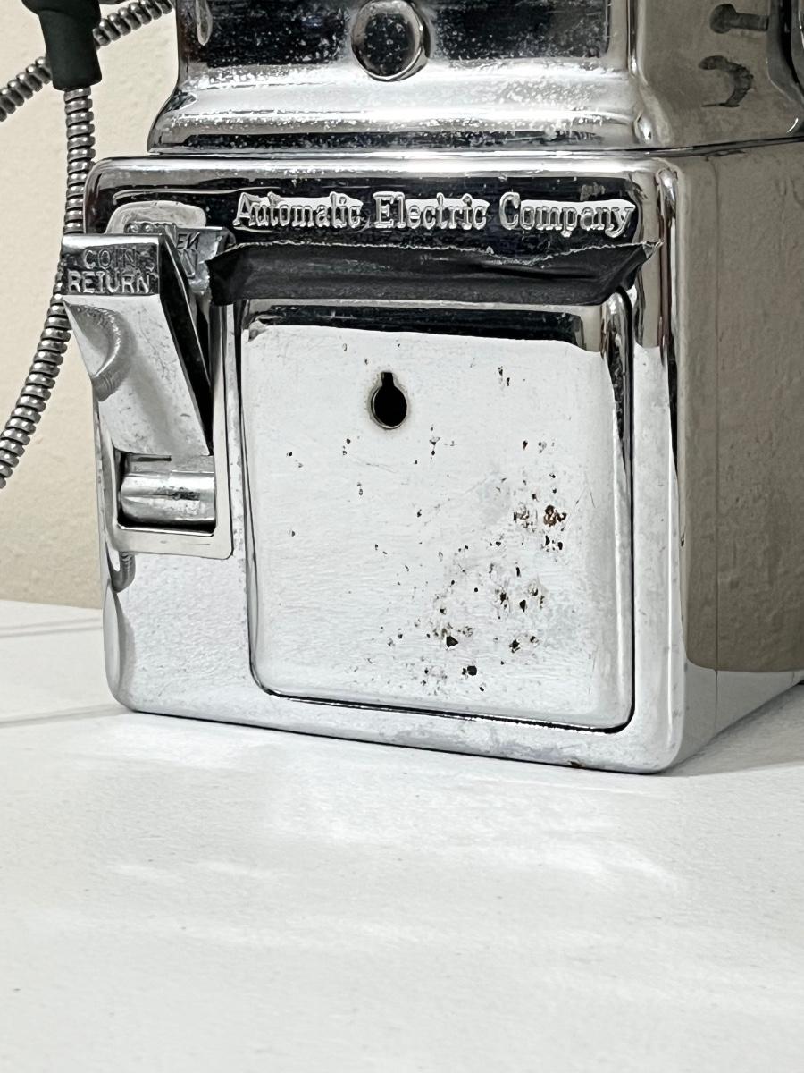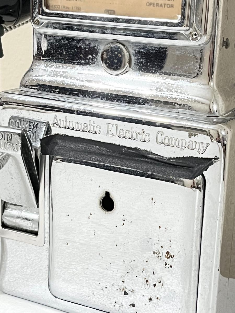AUTOMATIC ELECTRIC CO. ~ Vtg. Three (3) Slot Coin Chrome Rotary Pay Phone