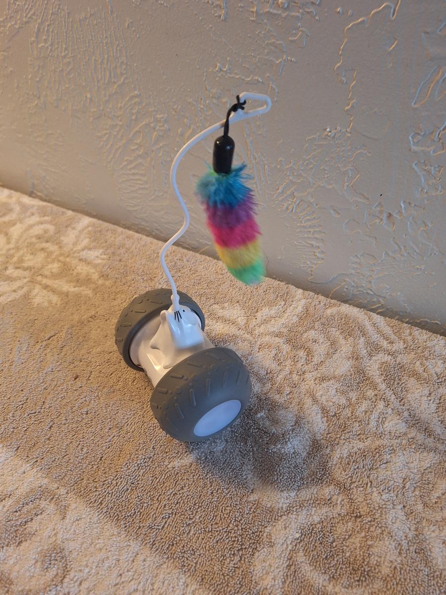 automatic interactive cat toy with a feather attachment