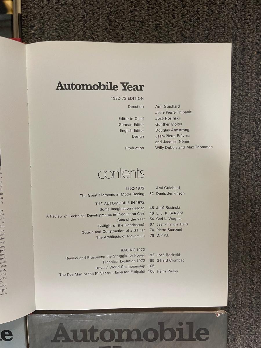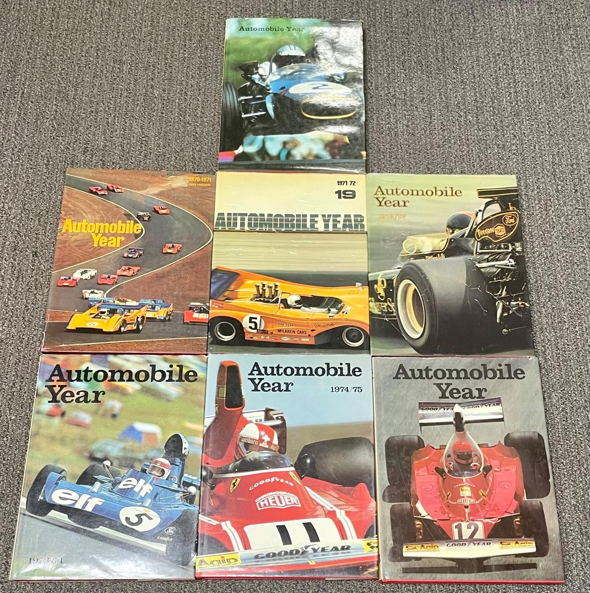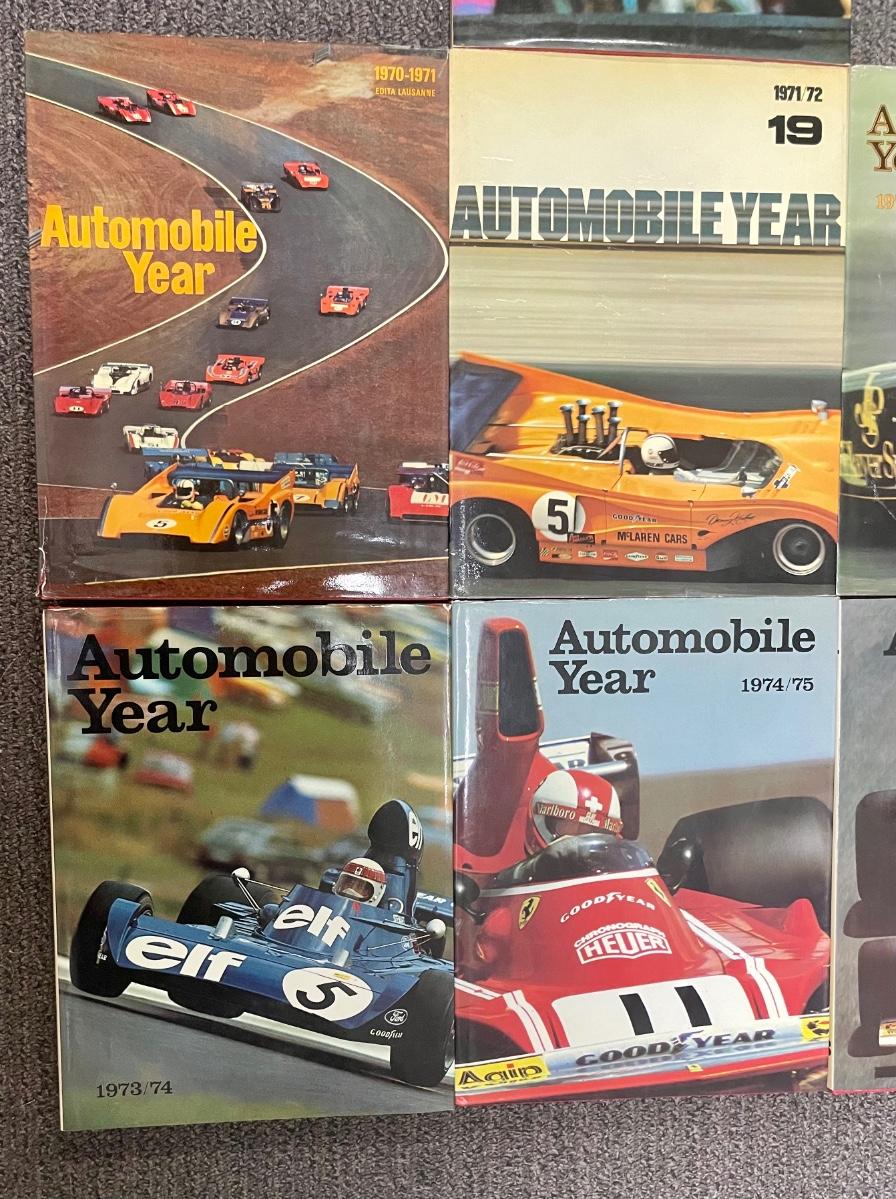 Volumes 15, and 18-23. Covers 1967/68, and 70 through 76. Annual hardcover books with articles devoted to news of the industry, and a section devoted to worldwide auto racing. All are in good condition.