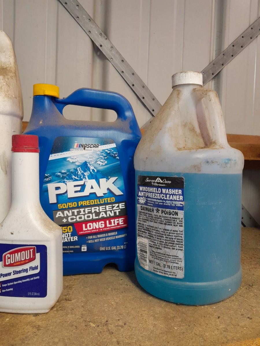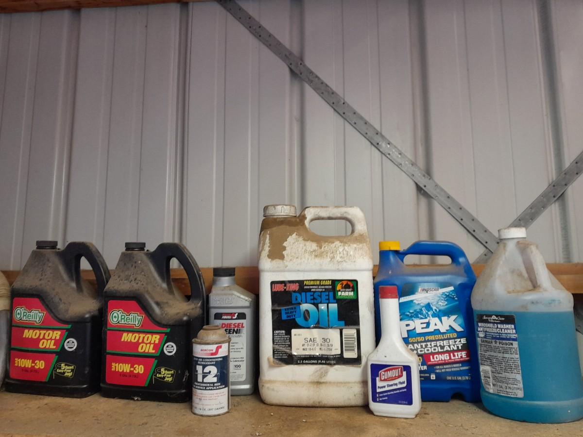 FULL TO PARTIALLY FULL BOTTLES OF AUTOMOTIVE / FARM EQUIPMENT CHEMICALS
