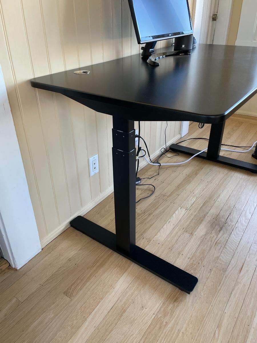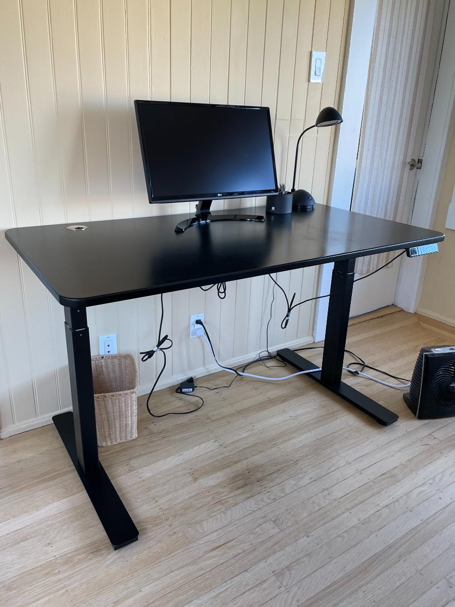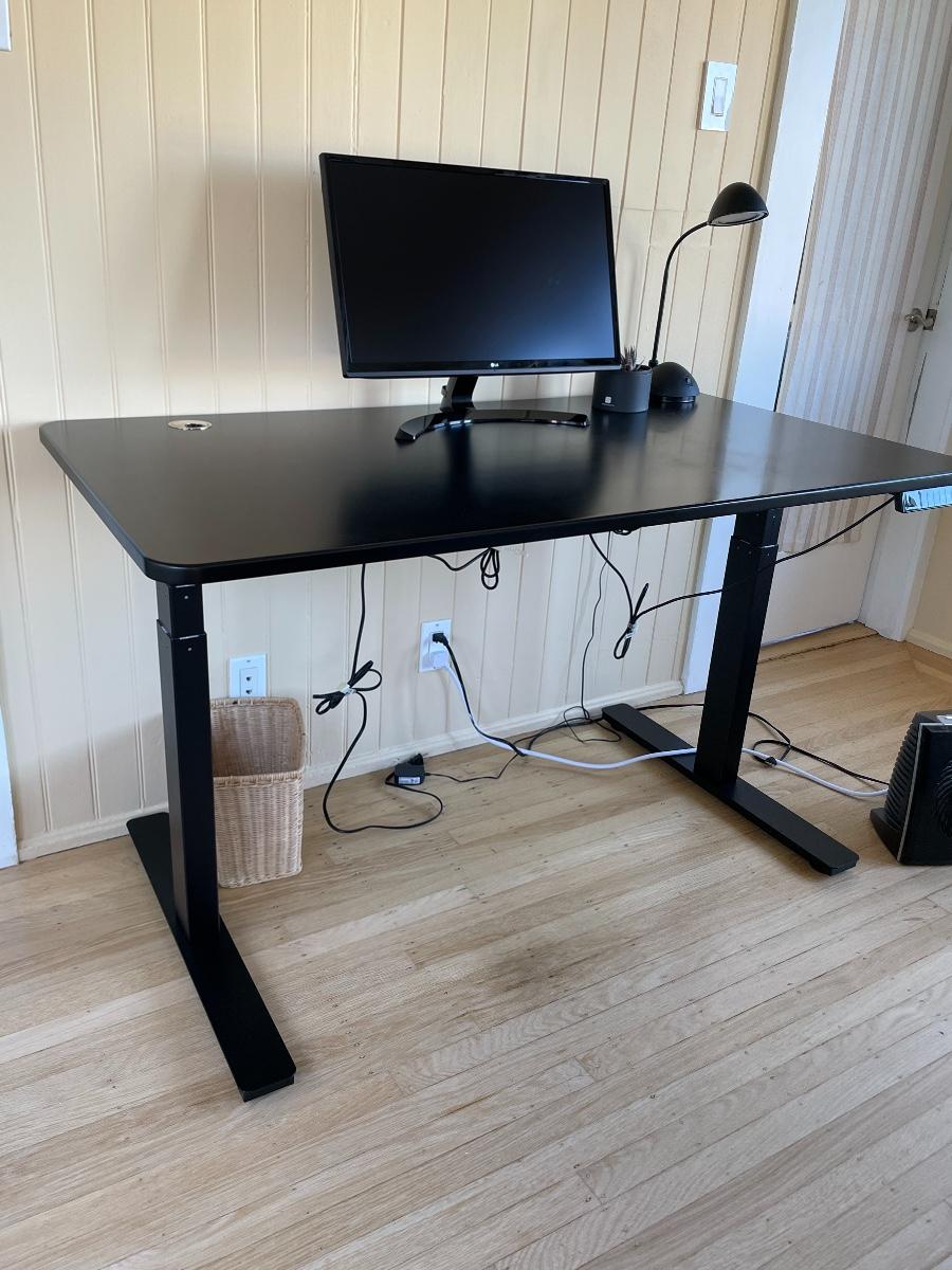 One-year-old Autonomous black desk with electric adjustment. Dimensions D28.5 x W53 x H (adjusted with power button.)