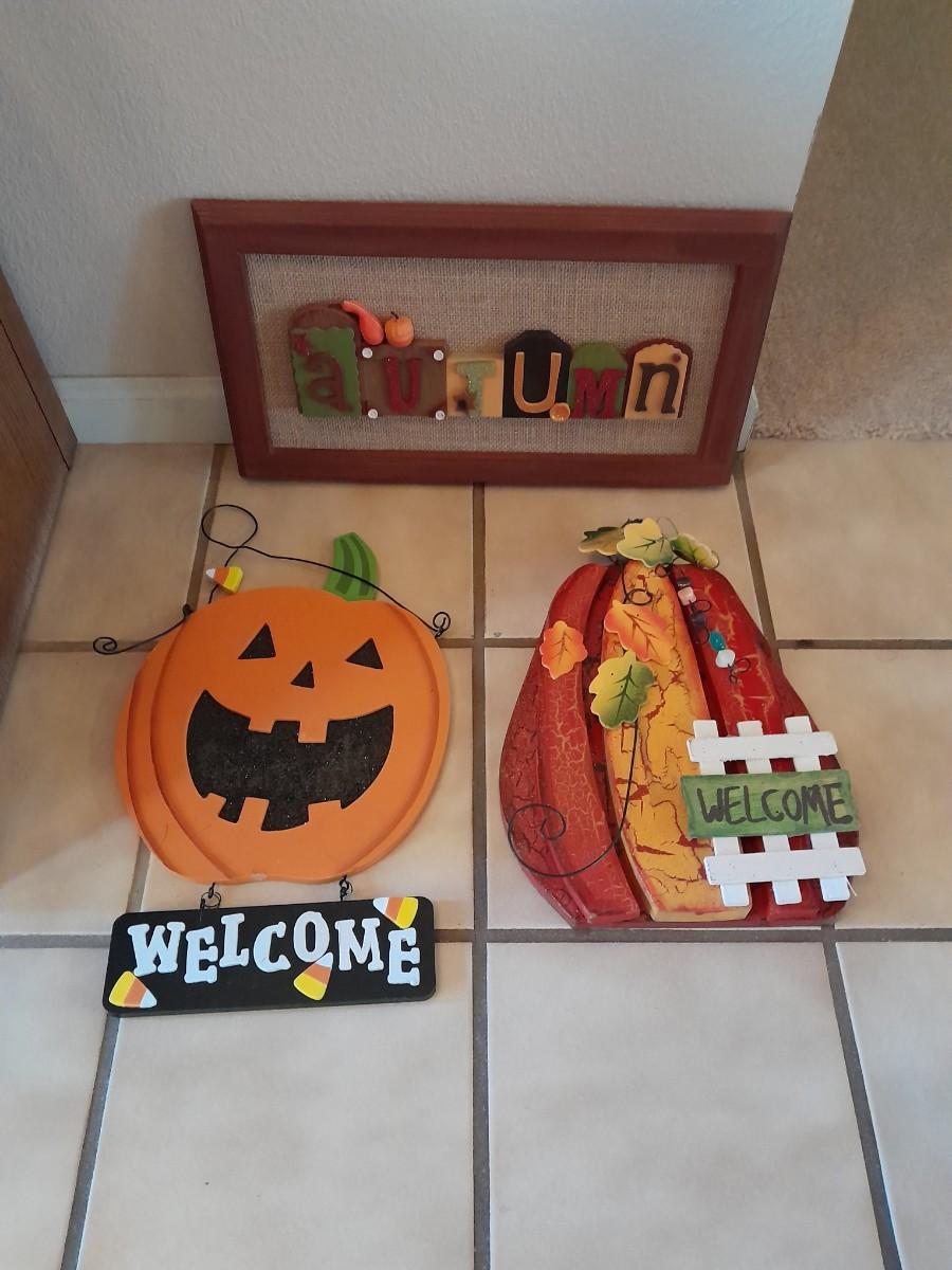 AUTUMN AND PUMPKIN WELCOME DOOR GREETING SIGNS AUTUMN SIGN IS 15.5" X 9"