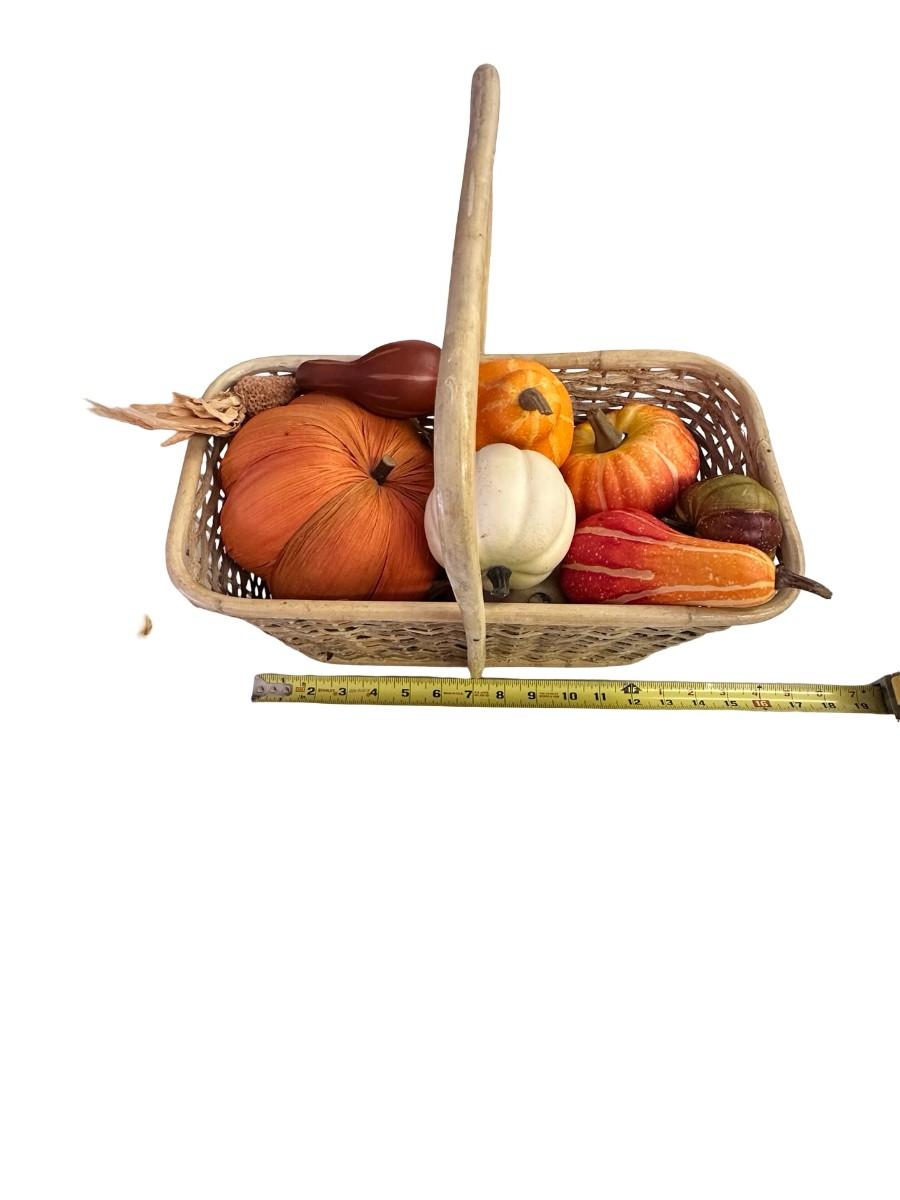 Autumn Decor-Basket with (Fake) Fruits & Veggies (lightweight, not solid) , Scarecrows