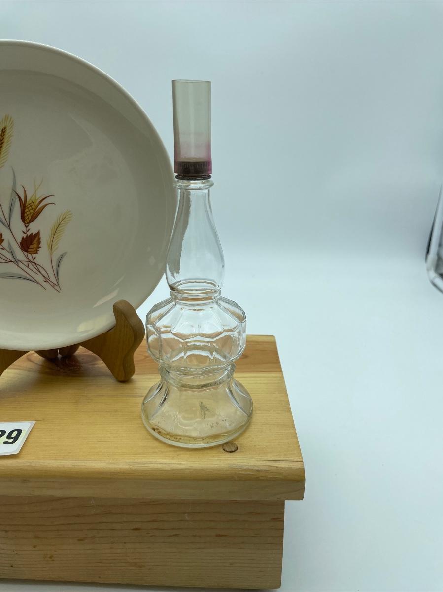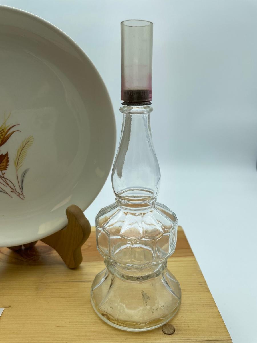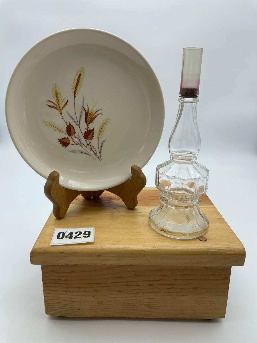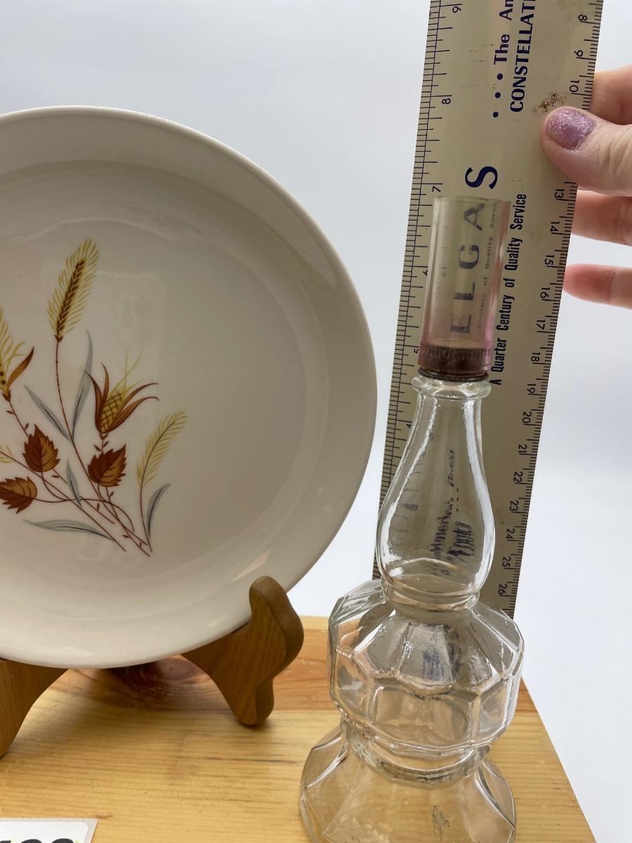 Autumn Harvest dessert plate & oil lamp lantern shape glass bottle