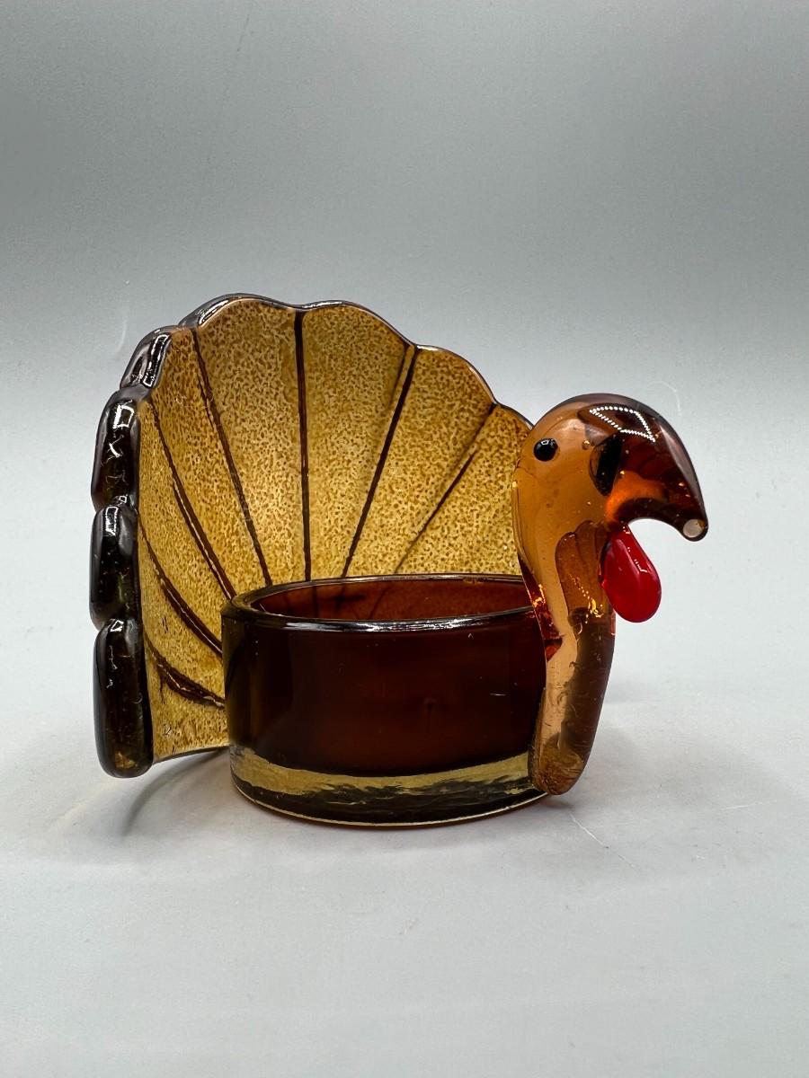Autumn Thanksgiving Holiday Seasonal Glass Turkey Candle Holder