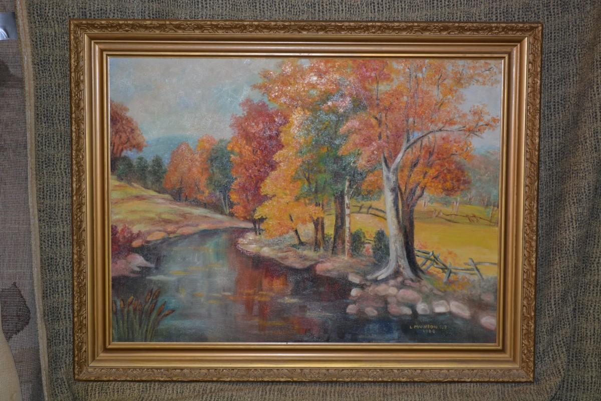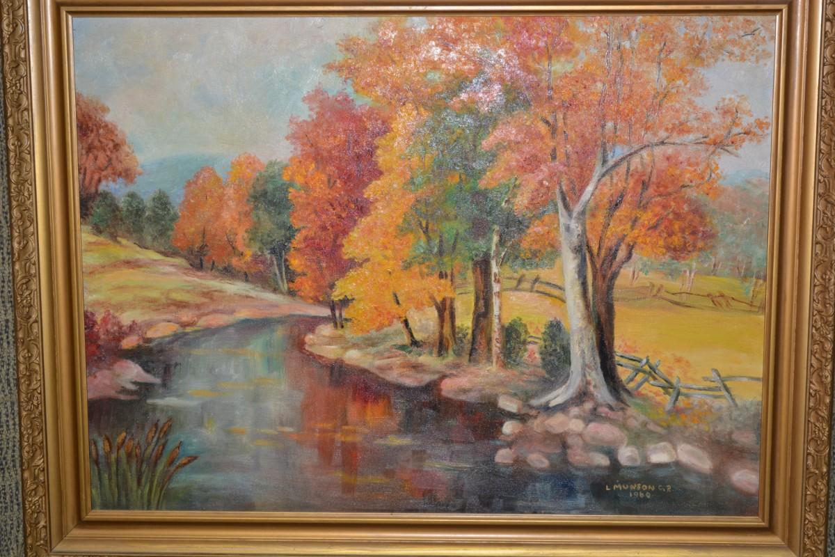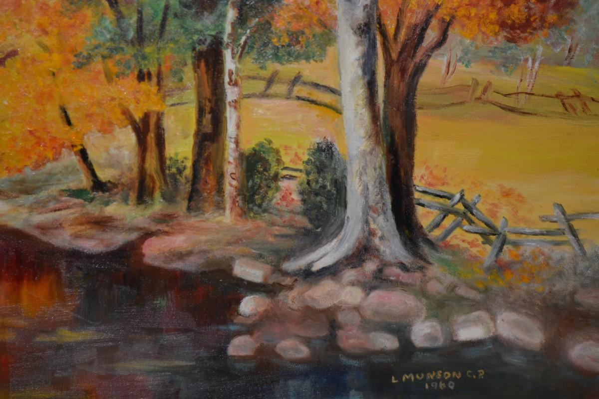 Autumn Landscape Original Art Piece, Vintage 1960 by L. Munson C.R.
