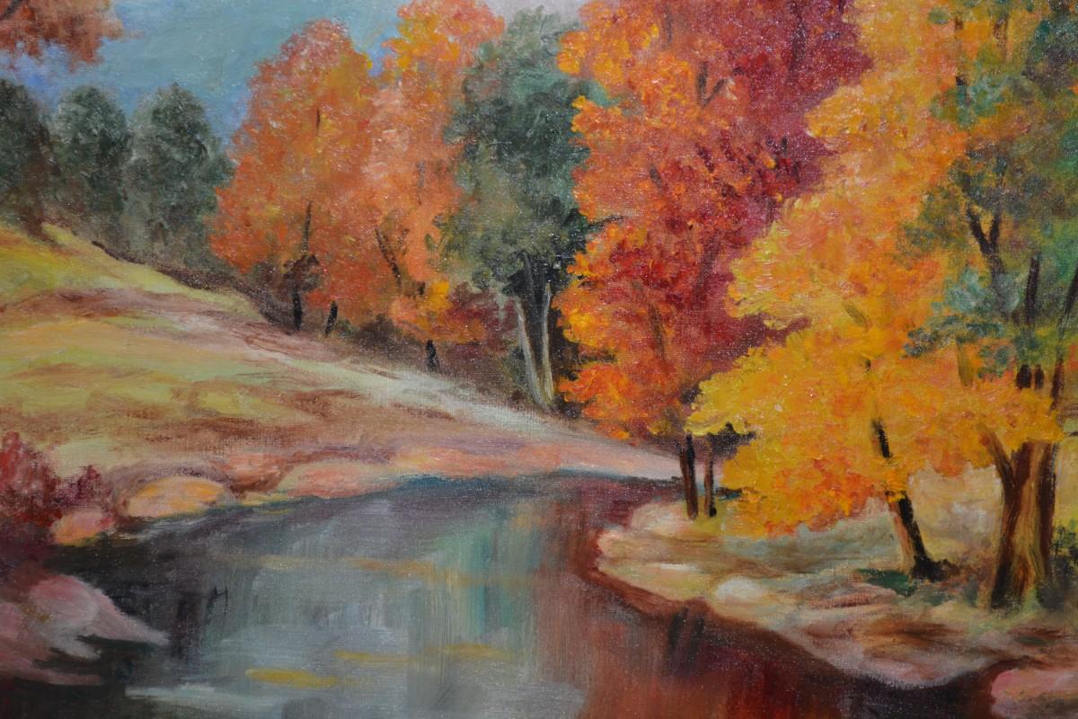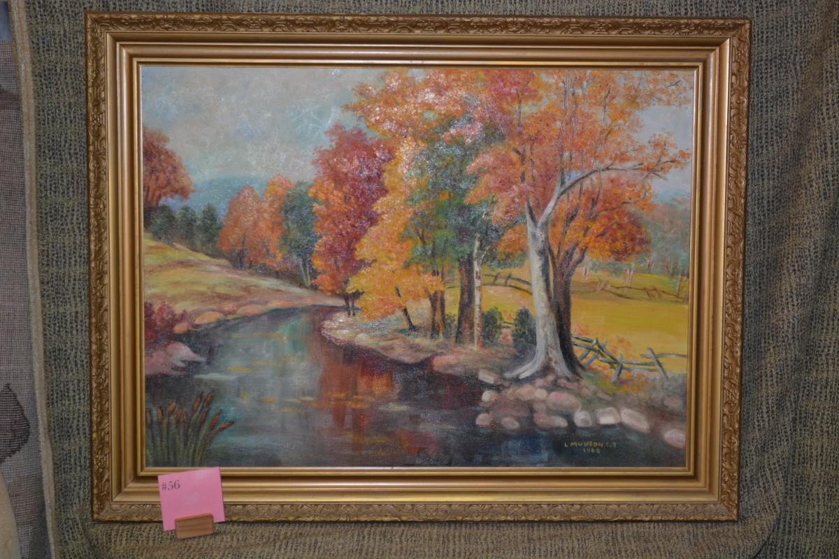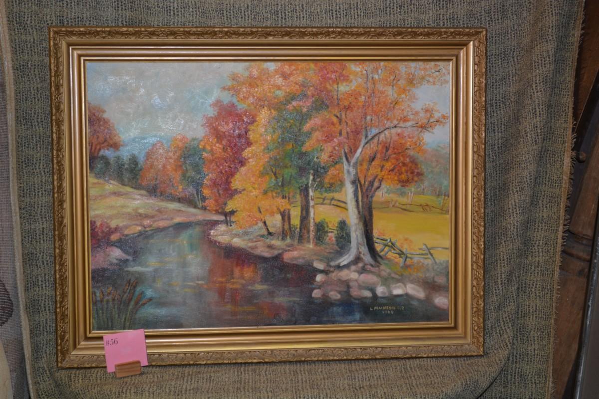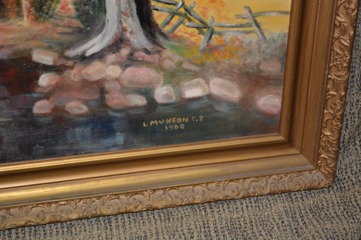 Autumn Landscape Original Art Piece, Vintage 1960 by L. Munson C.R.