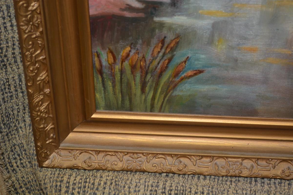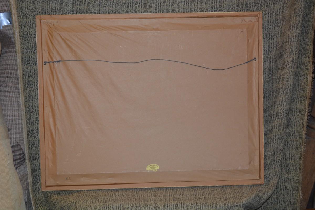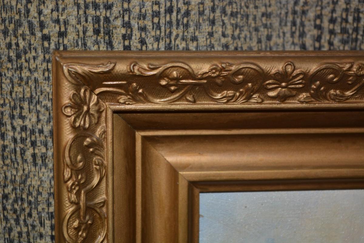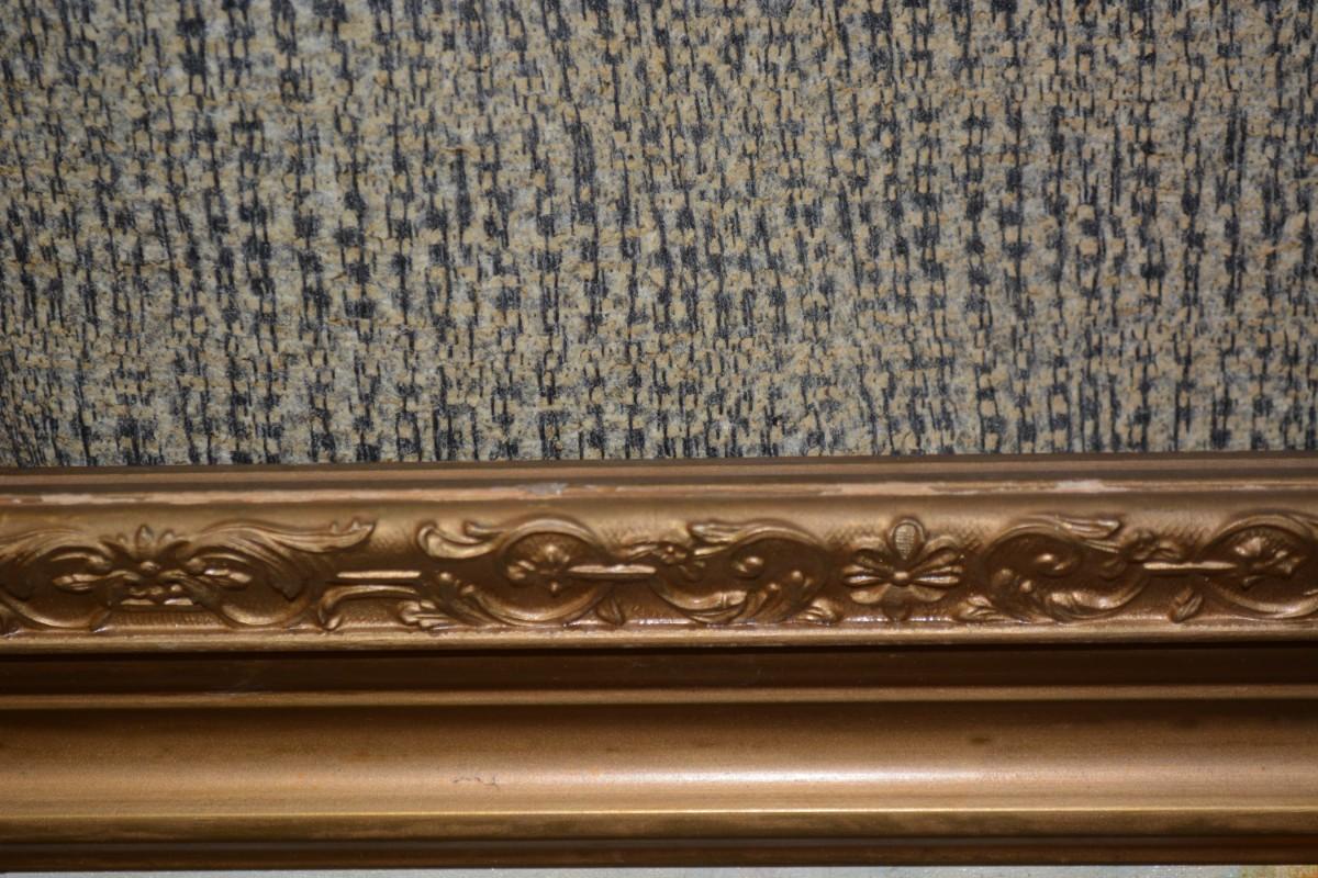 Ornate gold painted wood frame, heavy, minor damage. Measures 35.25"x27.25".