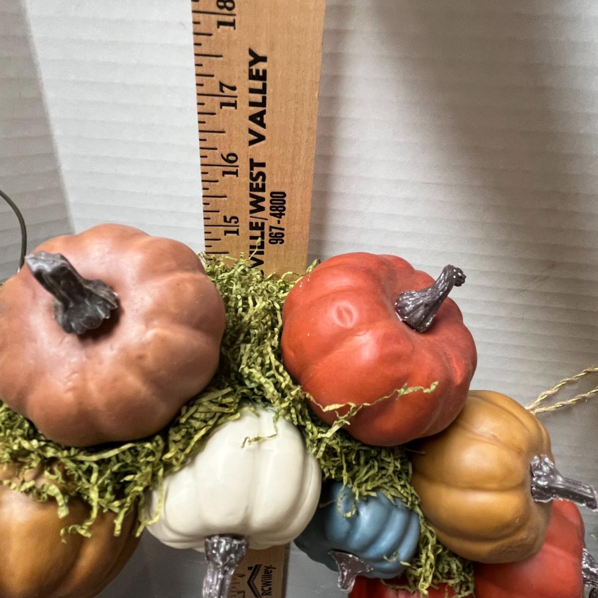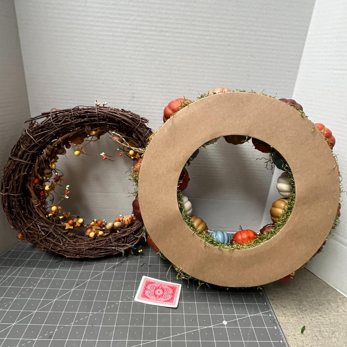 15 inch pumpkin wreath, 14 inch grapevine wreath.