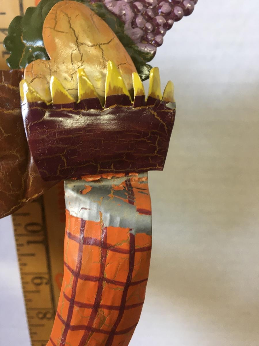 Cute tabletop decor. He does have some paint scuffed on his arm, but need to really look to see. Damage shown in photo