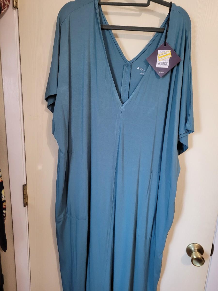 This dress is kinda caftan style with pockets. Teal color 2X