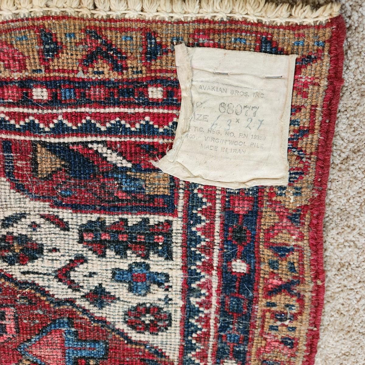 Avakian Bros. Runner Made in Iran 100% Virgin Wool Pile Rug 76" x32"  68077
