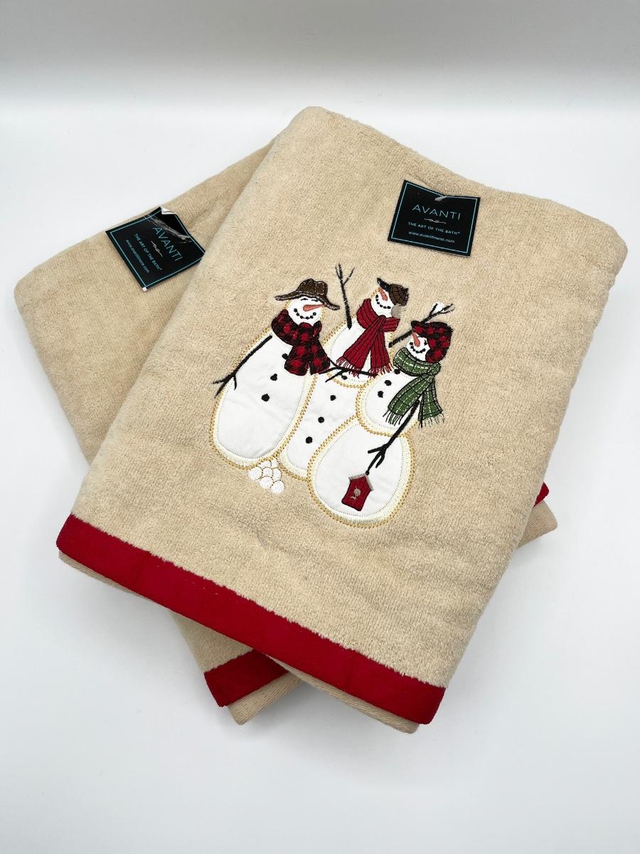 AVANTI ~ Snowman Gathering ~ Set Of Two (2) Bath Towels ~ NWT