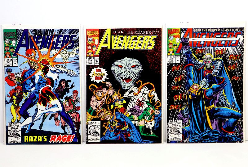 Set of 24 Copper Age AVENGERS comic books, included are issues ranging from #310 to #356 - please see photos to see all included issues - very nice run, all books in higher grade ranging from fine to very fine and better condition. Comics published by Marvel back in 1989-92.