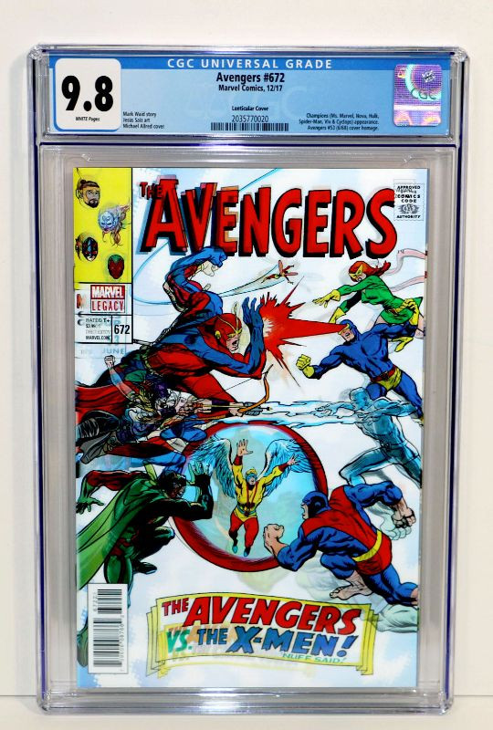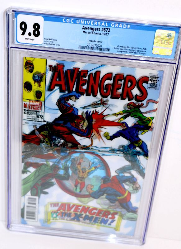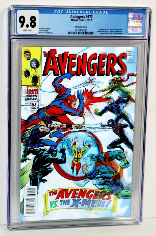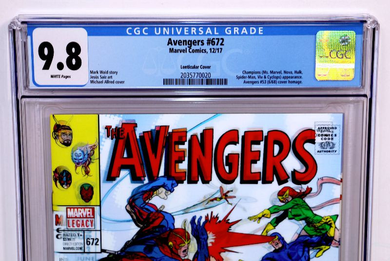 Hot comic book, just in back from CGC - graded high at 9.8, Avengers #672 Lenticular Cover featuring Homage of Avengers #53 from 1968 - Marvel Comics 12/2017 - Collector's Item!