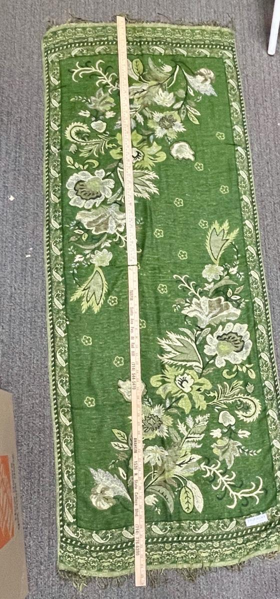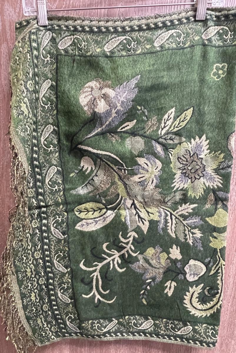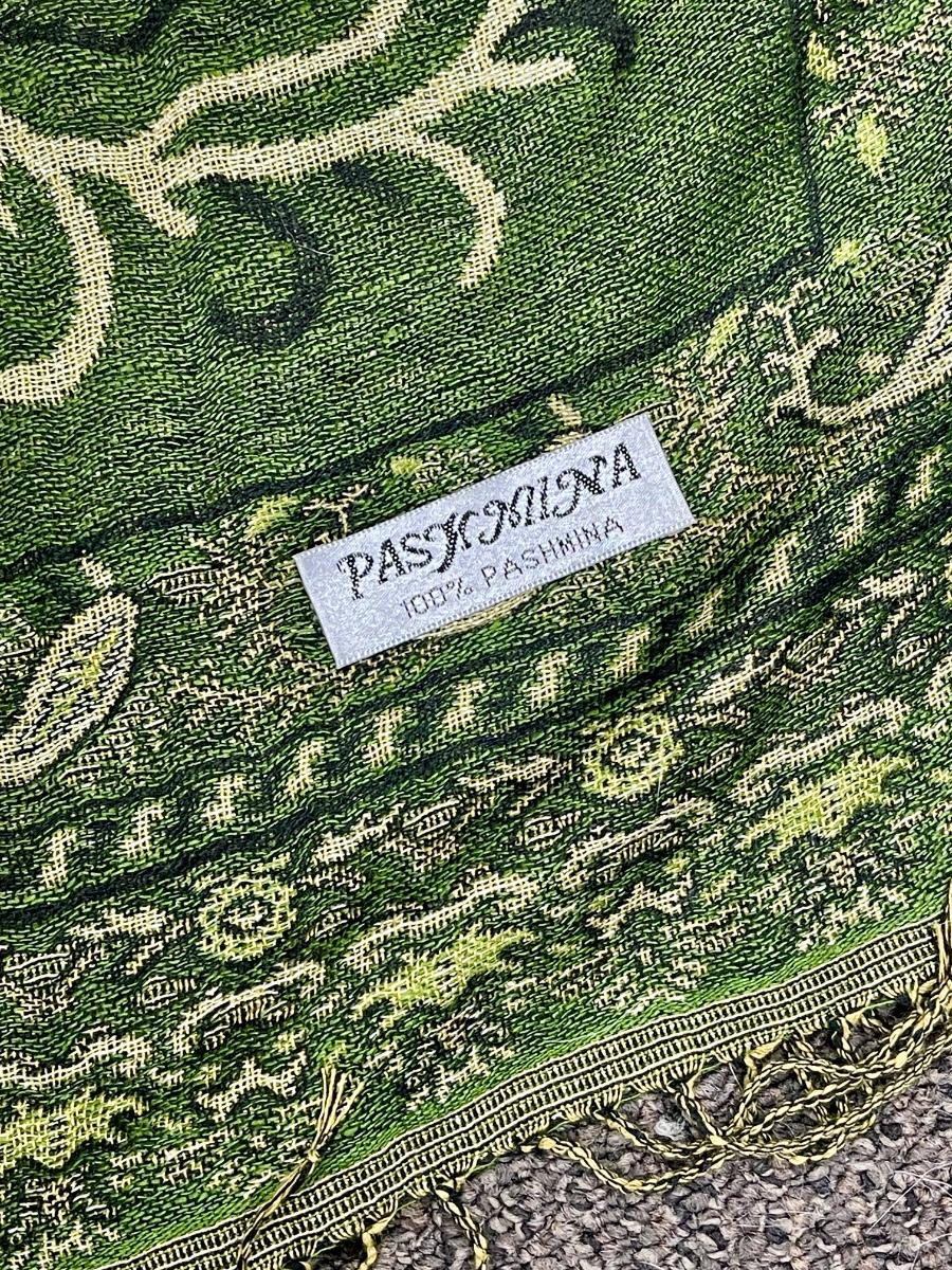 100% Pashmina Green & Cream Floral Pattern Wrap Shawl - soft, cozy, lightweight