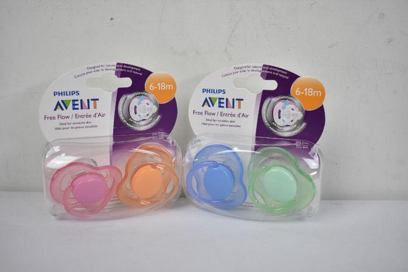 Avent Freeflow Pacifier - 6-18 Months - 2 Pair - Blue/Green/Pink/Orange - New