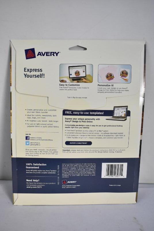 Avery Fabric Transfers: 2 Packages, 6 Sheets Each - New, Sealed