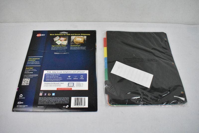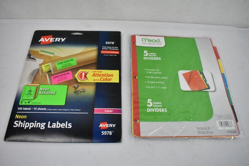 Avery Neon Shipping Labels and Mead 5 Tabbed Pocket Dividers - New