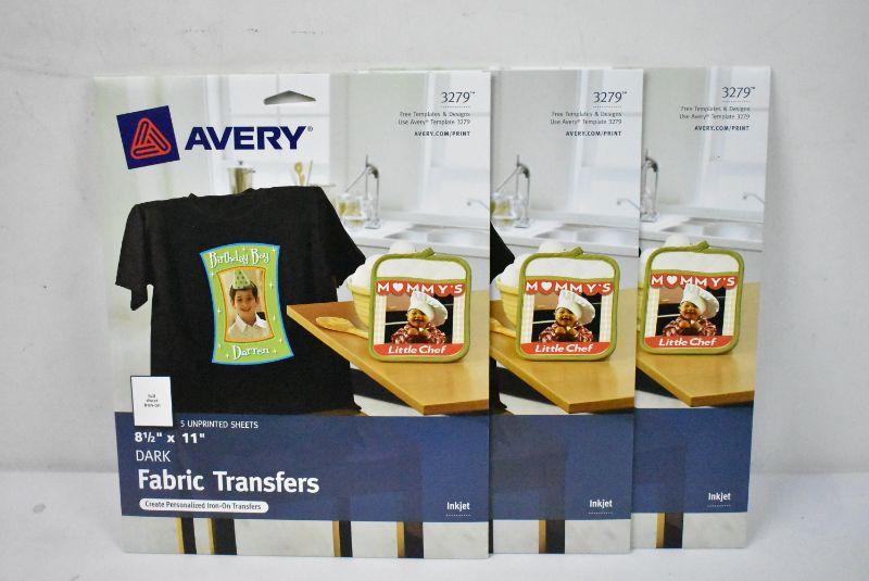 Avery Printable T-Shirt Transfers For Dark Fabrics, Inkjet, 3 Packages of 5 Sheets (15 Total) - New
