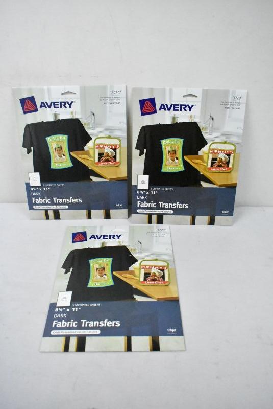 Avery Printable T-Shirt Transfers For Dark Fabrics, Inkjet, (3279). 5 sheets in each package. 3 packages - New