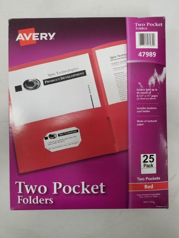 Avery Two Pocket Folders - 25 Pack, Red - New