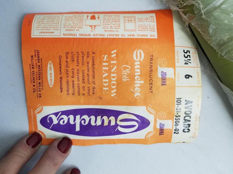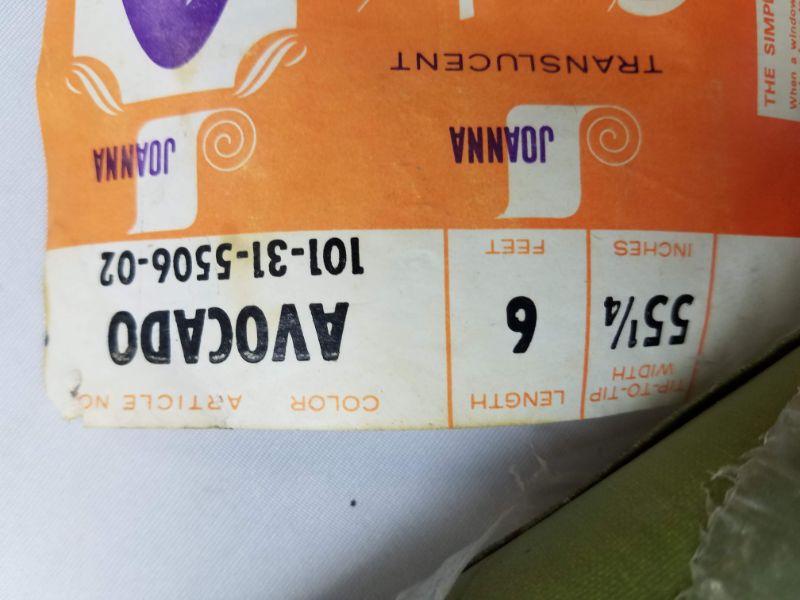 Avocado Green Cloth Window Shade with Roller. Vintage. 55.25" x 6 Feet