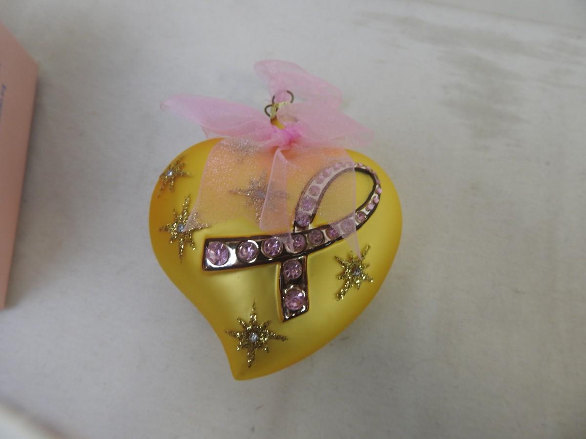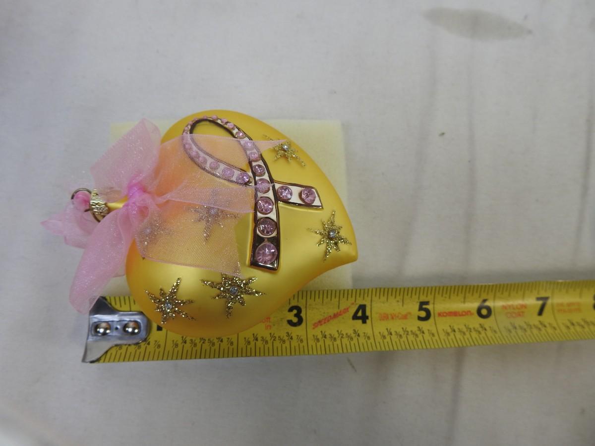 Avon 2004 Breast Cancer Awareness ornament, goldenrod color, pink jewels