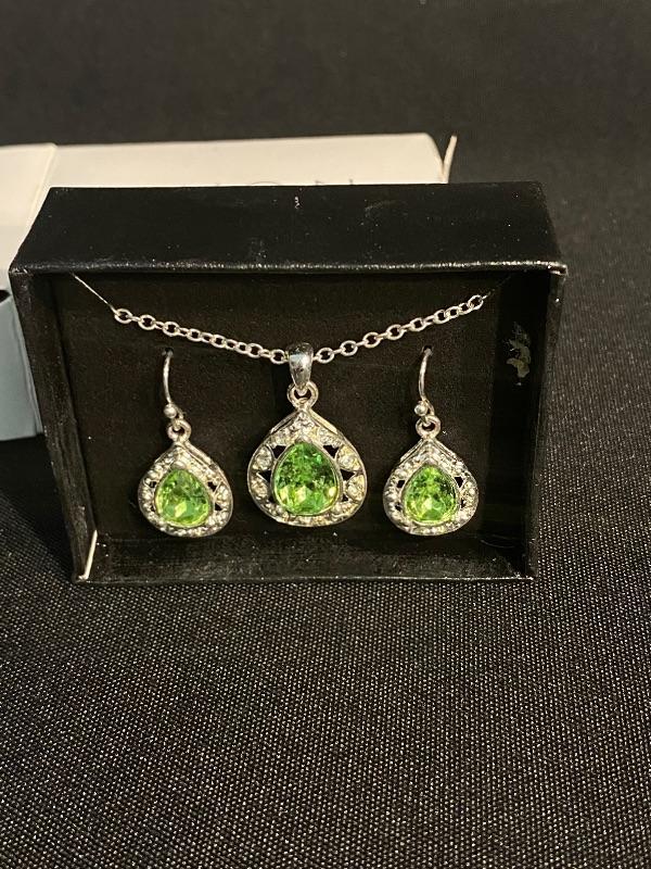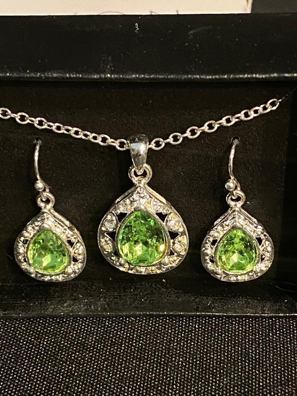 AVON Sweet Souls August Birthstone Gift Set. Green peridot earrings with matching pendant necklace. Never worn. Comes in original black gift box and Avon box.