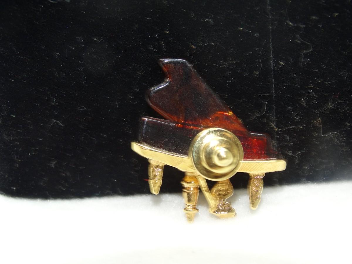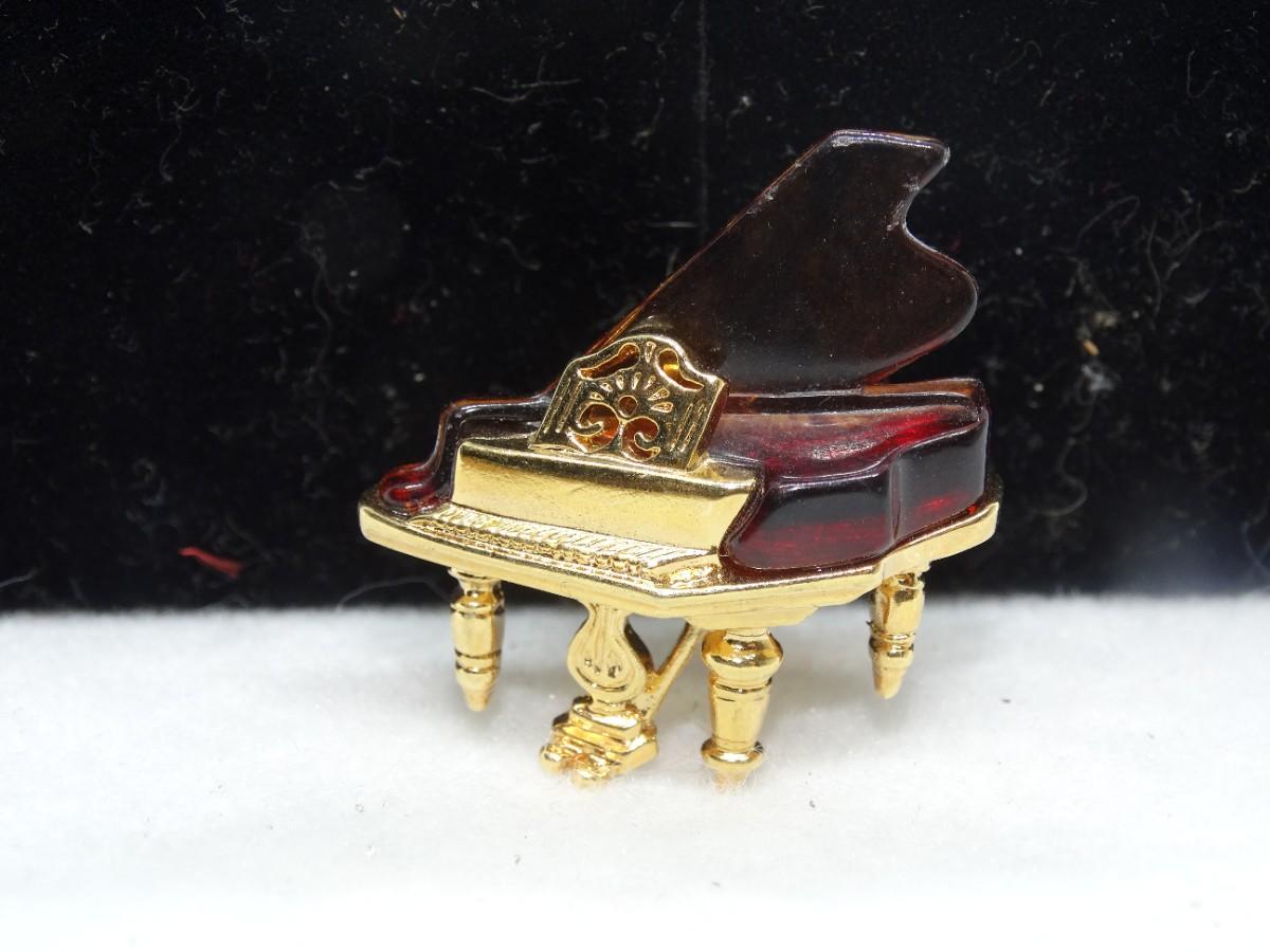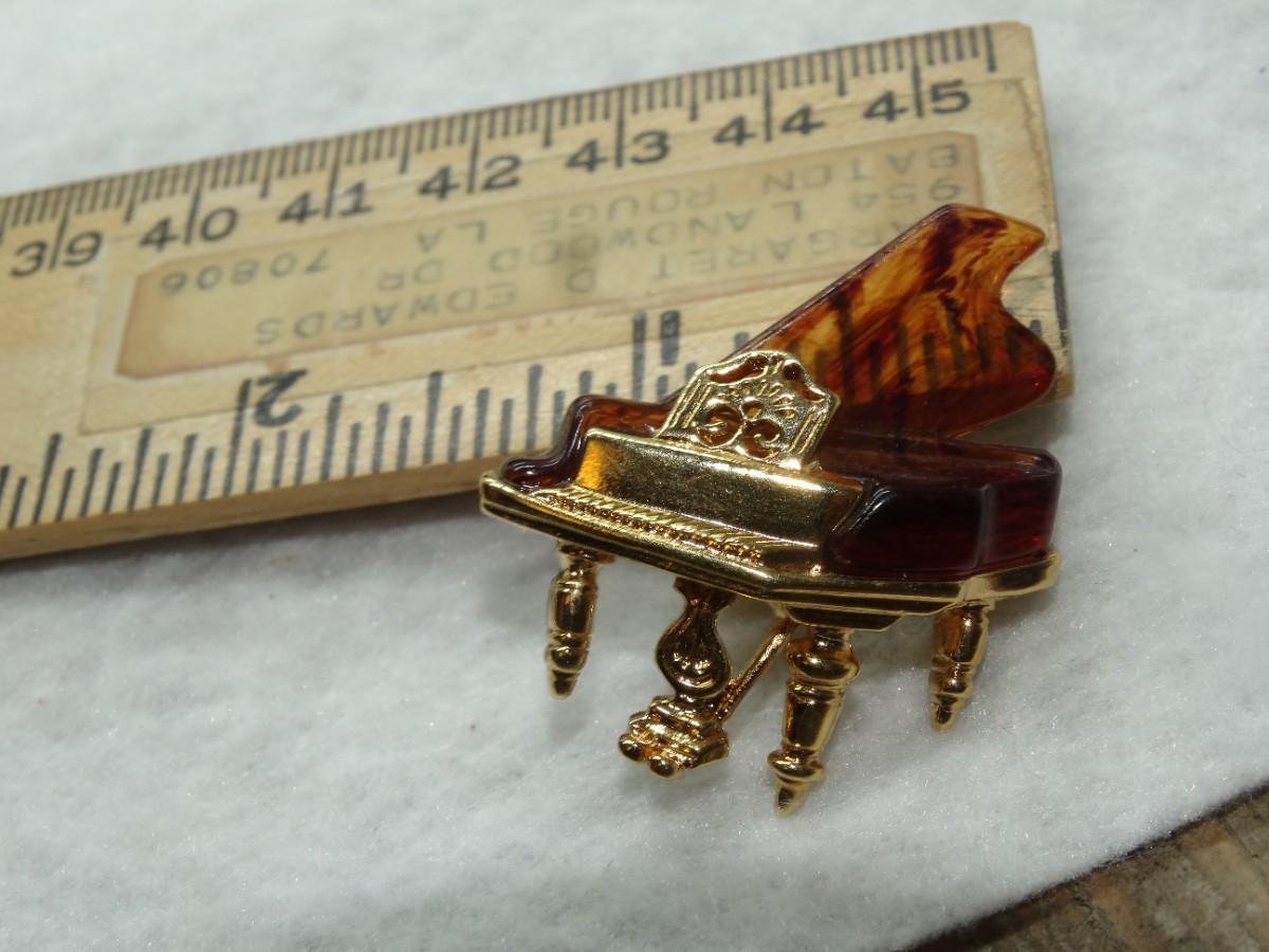 Avon Baby Grand Piano Marble Lucite Gold Tone Pin Vintage Faux Tortoise Shell