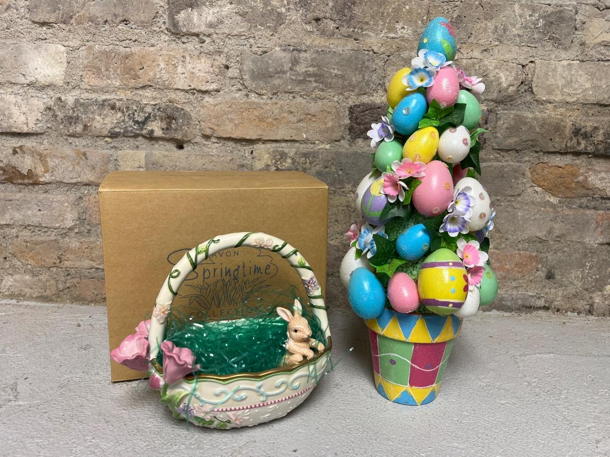Egg basket from the Avon Springtime collection and colorful egg tree