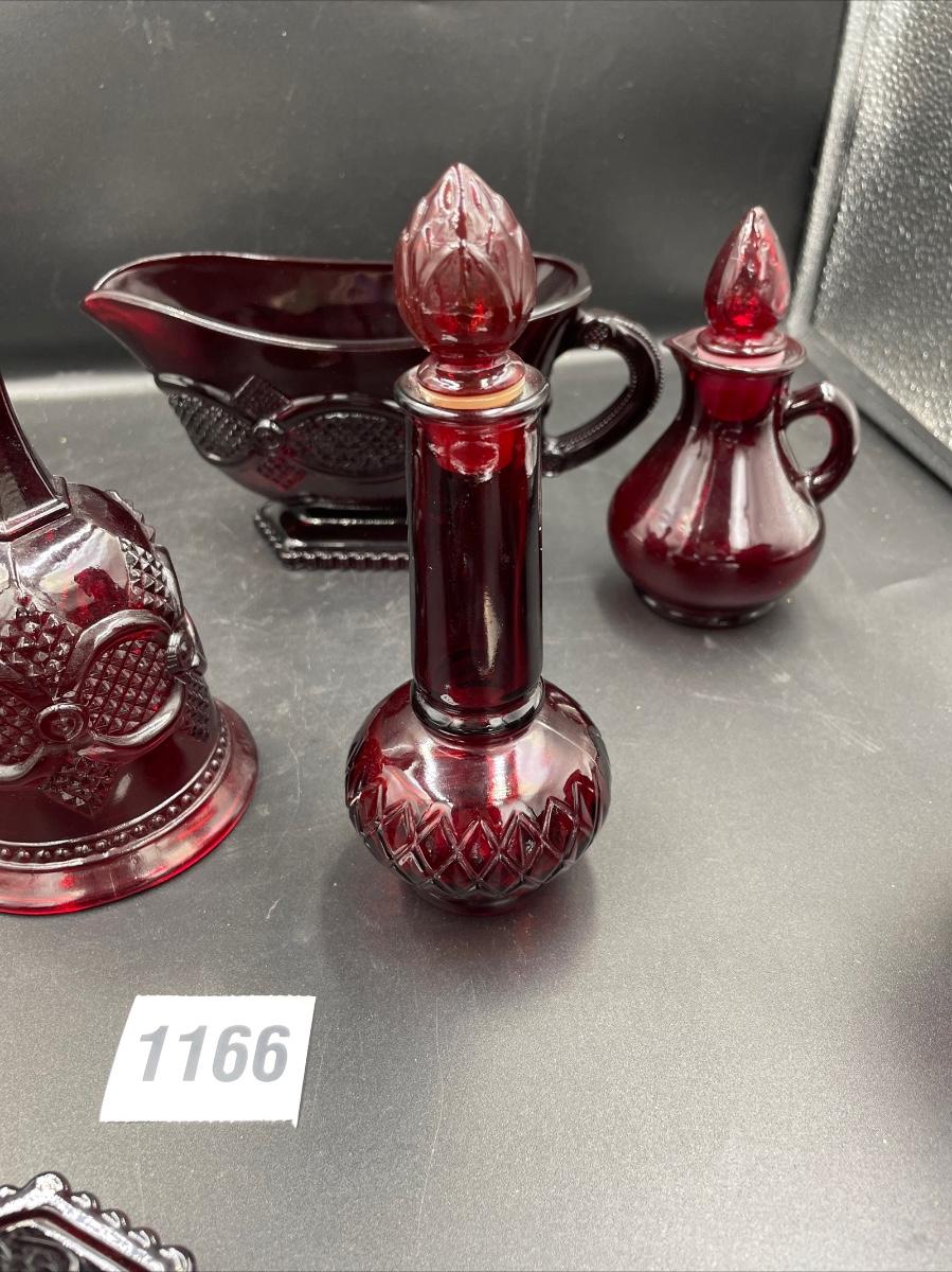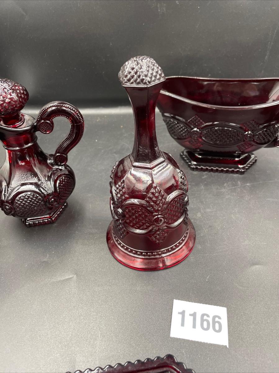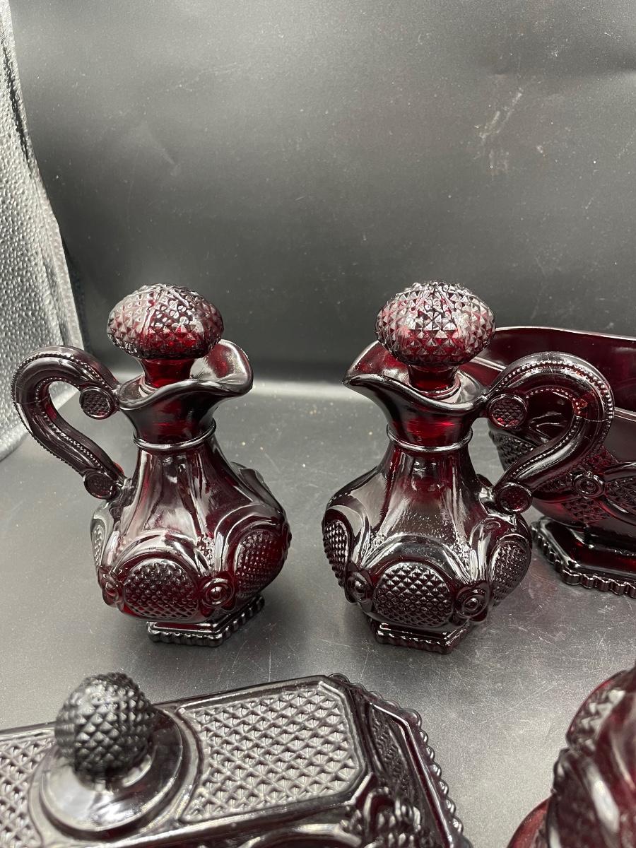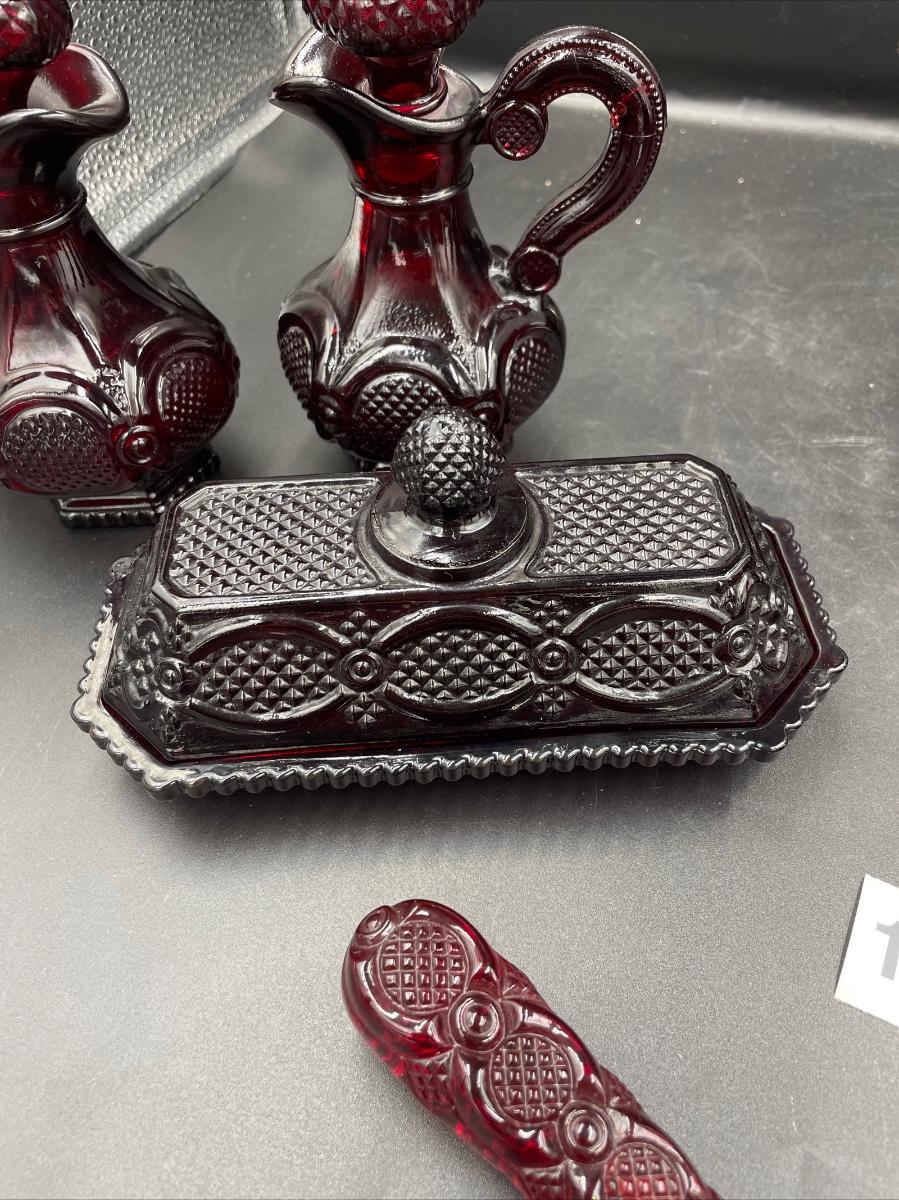 1 bell. 1vinegar cruet 1 creamer 1 sugar 1 Topaz cologne bottle